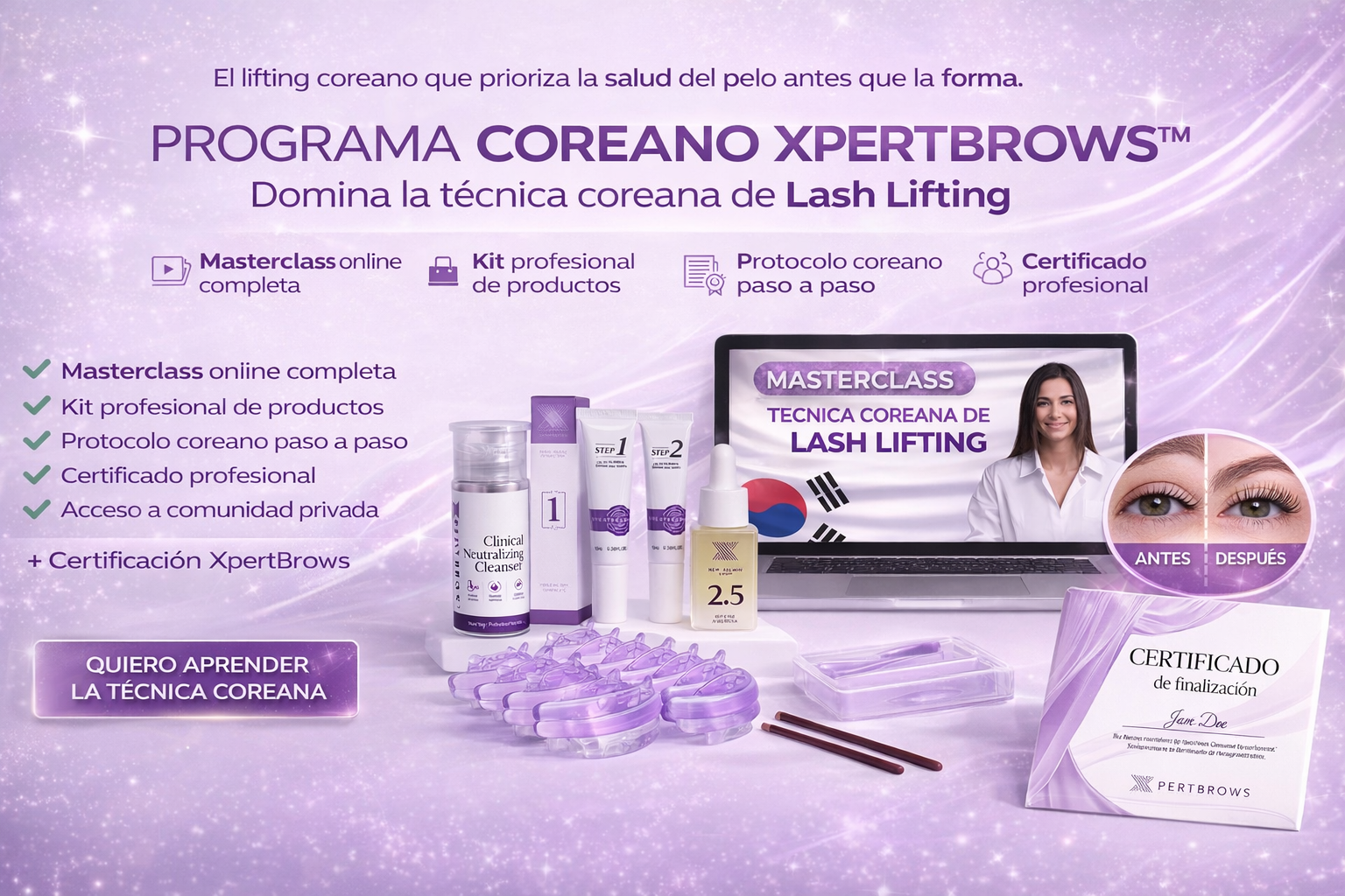 A partir de esa experiencia práctica nace Xpertbrows™, una marca creada para formar profesionales con un enfoque técnico, estructurado y responsable, basado en método, control y cuidado de la pestaña natural.